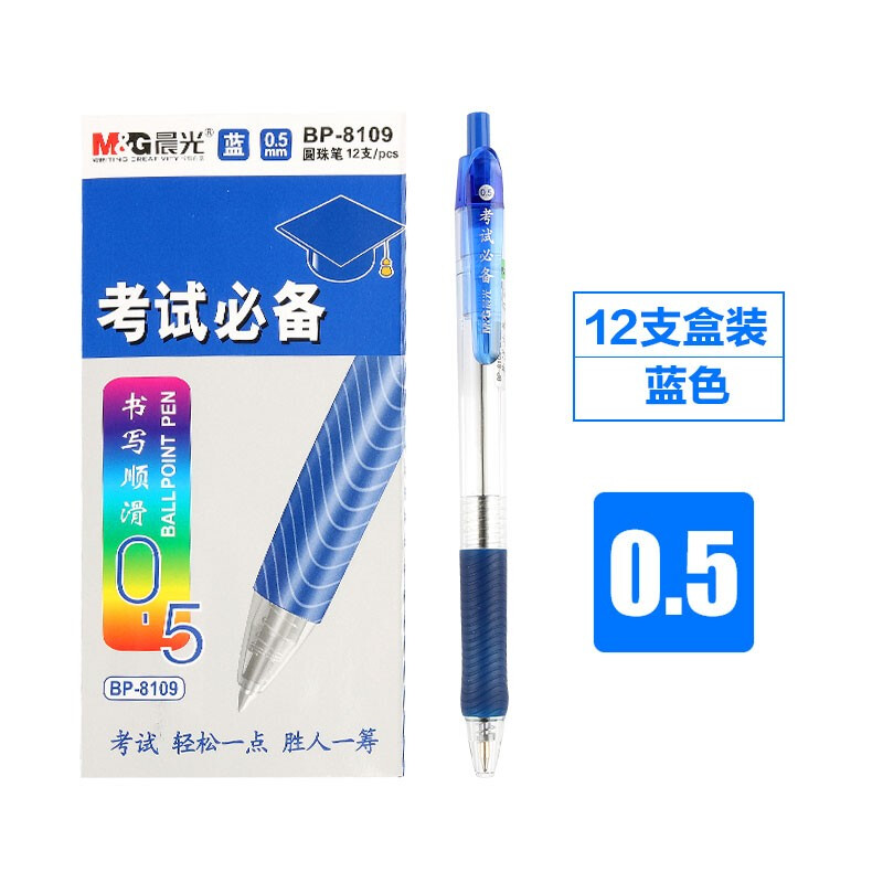 晨光 BP-8109 圆珠笔按动笔 0.5mm 蓝色 一盒12支 整盒价 自营